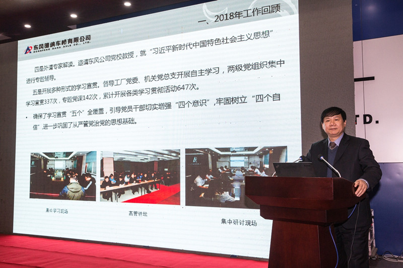 受公司党委委托,公司纪委书记陈正权作党委工作报告。报告总结回顾了2018年党委工作,并对2019年重点工作进行了安排部署。2019年,坚持以习近平新时代中国特色社会主义思想为指导,深入贯彻落实党的十九大以来的会议精神和上级党委决策部署,通过强化四大“建设”(思想政治建设、基层组织建设、党风廉政建设、和谐企业建设),实现四个“增强”(增强转型发展引领力、增强转型发展战斗力、增强转型发展内控力、增强转型发展凝聚力),为实现公司年度经营和发展目标提供坚强的思想保障、组织保障及精神动力